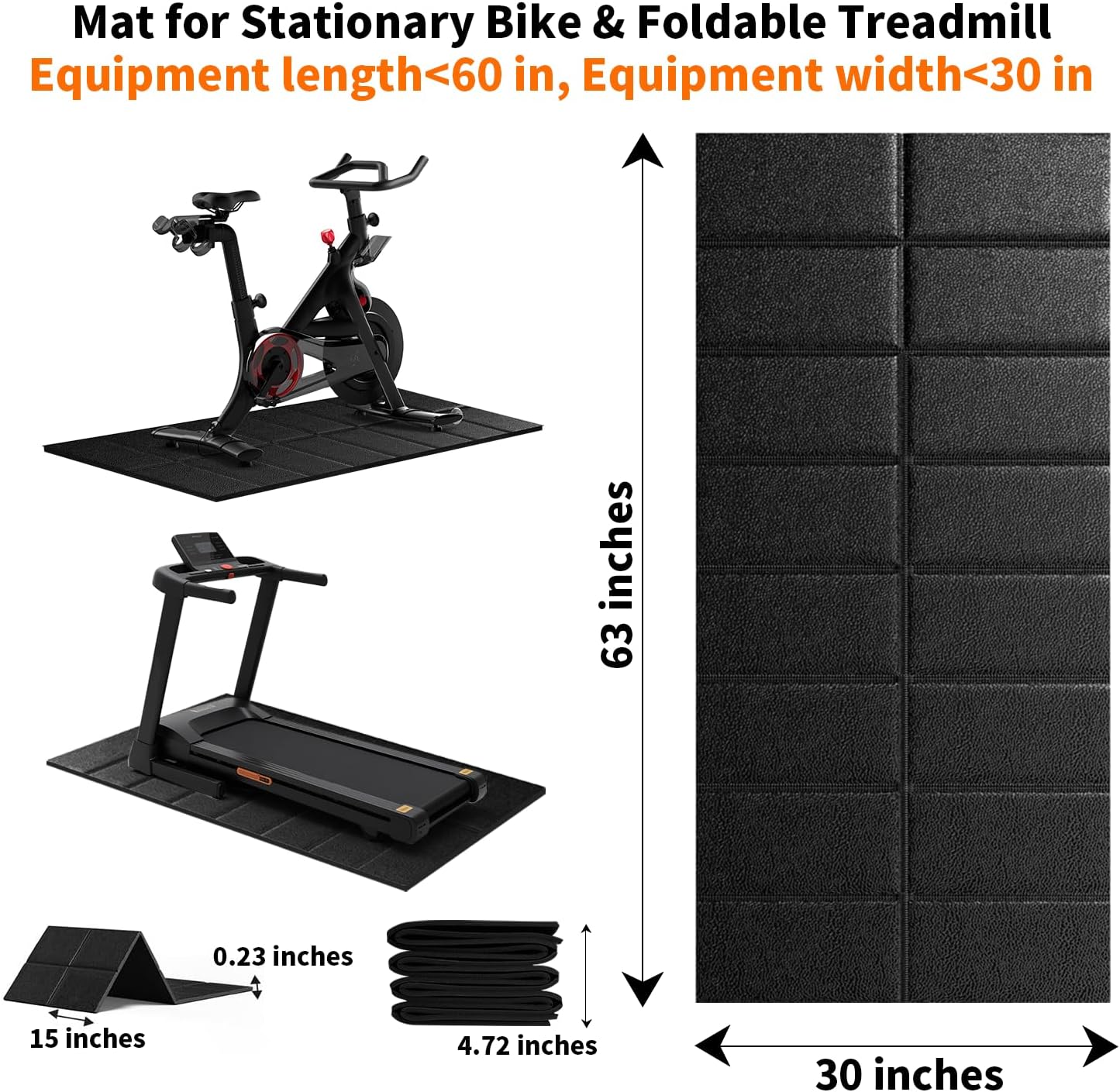 Bike/Treadmill Mat 63×30,Compatible with Peloton-bike-treadmill-walking pad-Elliptical, 1/4βThick Bike Mat for Hardwood Floors Protector, Trainer Pad for Under Stationary Spin Bike on Carpet, Exercise Equipment Mat, Noise Shock Absorption