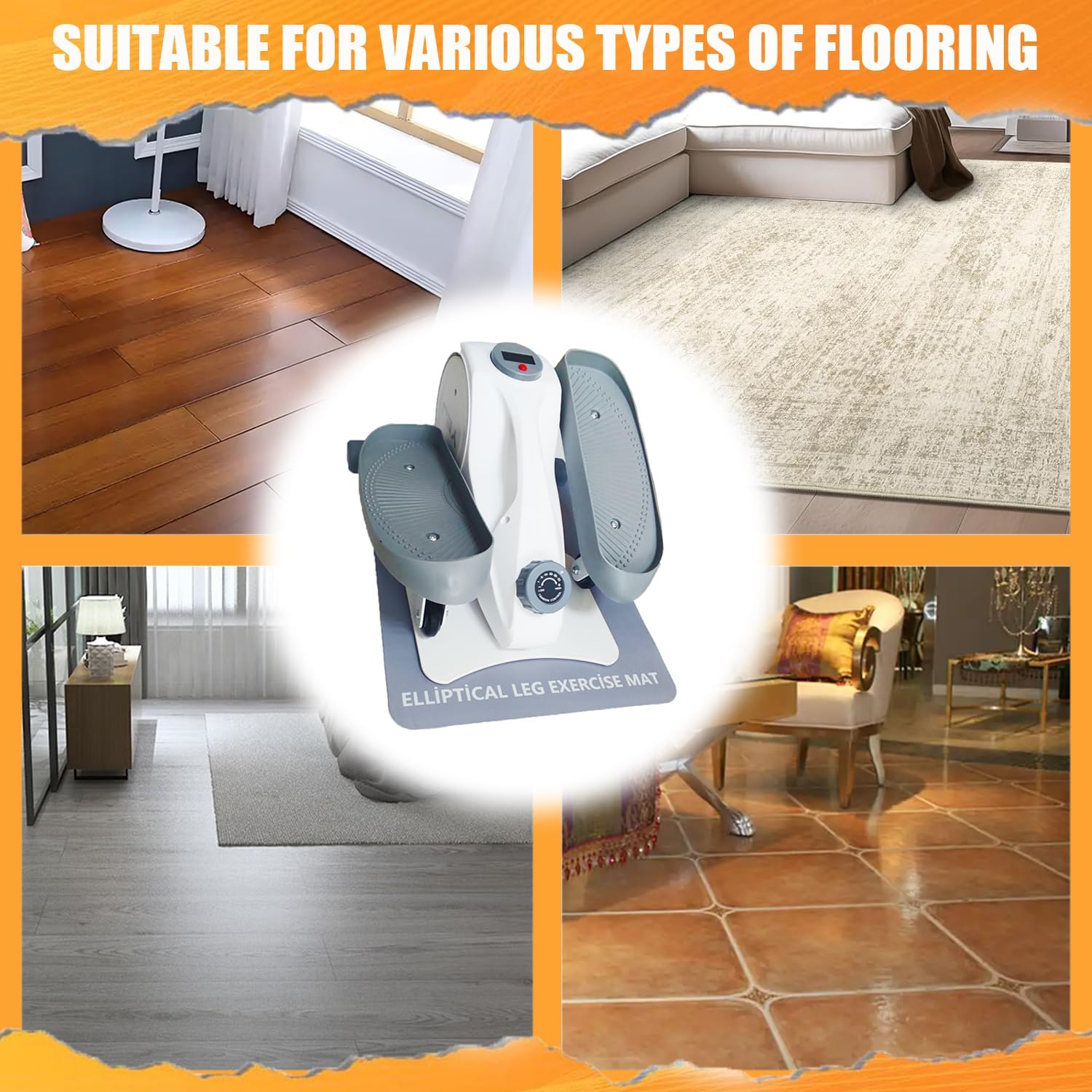 【Universal Floor Protection】This non-slip ellipse leg exerciser pad is made from high-quality materials, safeguarding your floors from damage, preventing unsightly scratches and keeping your exercise area looking pristine. Universal use on various surfaces, including wood, stone, tile, and concrete, our 3.0 mm thick workout mat acts as a reliable barrier