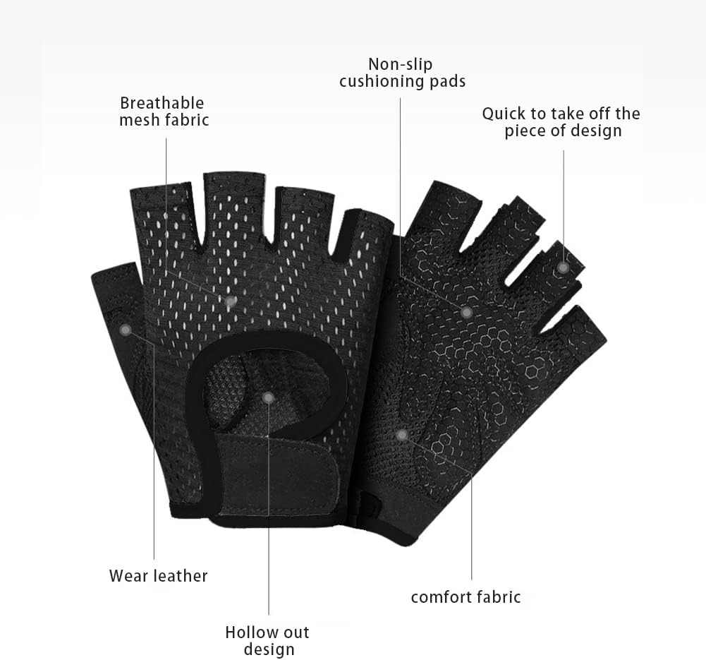【DURABLE MATERIAL】The gym fitness gloves are made of polyester mesh fabric, elastic, soft and comfortable, back hollow design, breathable, absorb sweat, washable and durable.
