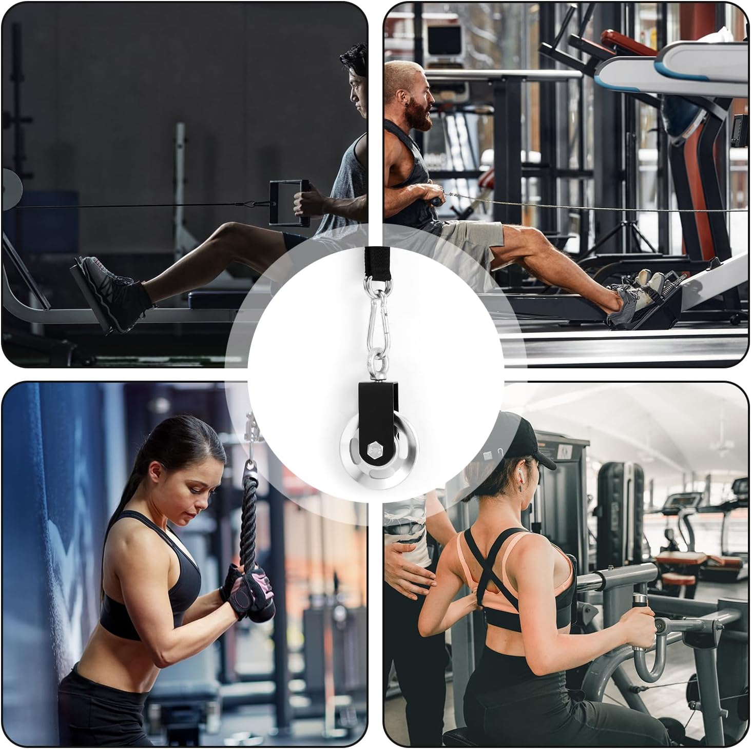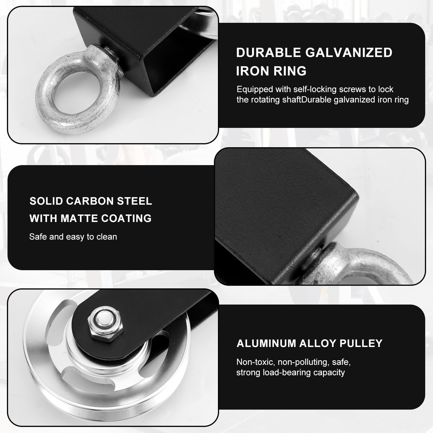 Excellent Design: Our gym pulley can 360-degree rotate, equipped with self-locking screws to lock the rotating axis. It is safe, stable, with strong carrying capacity, and super quiet, so you can use it with confidence.