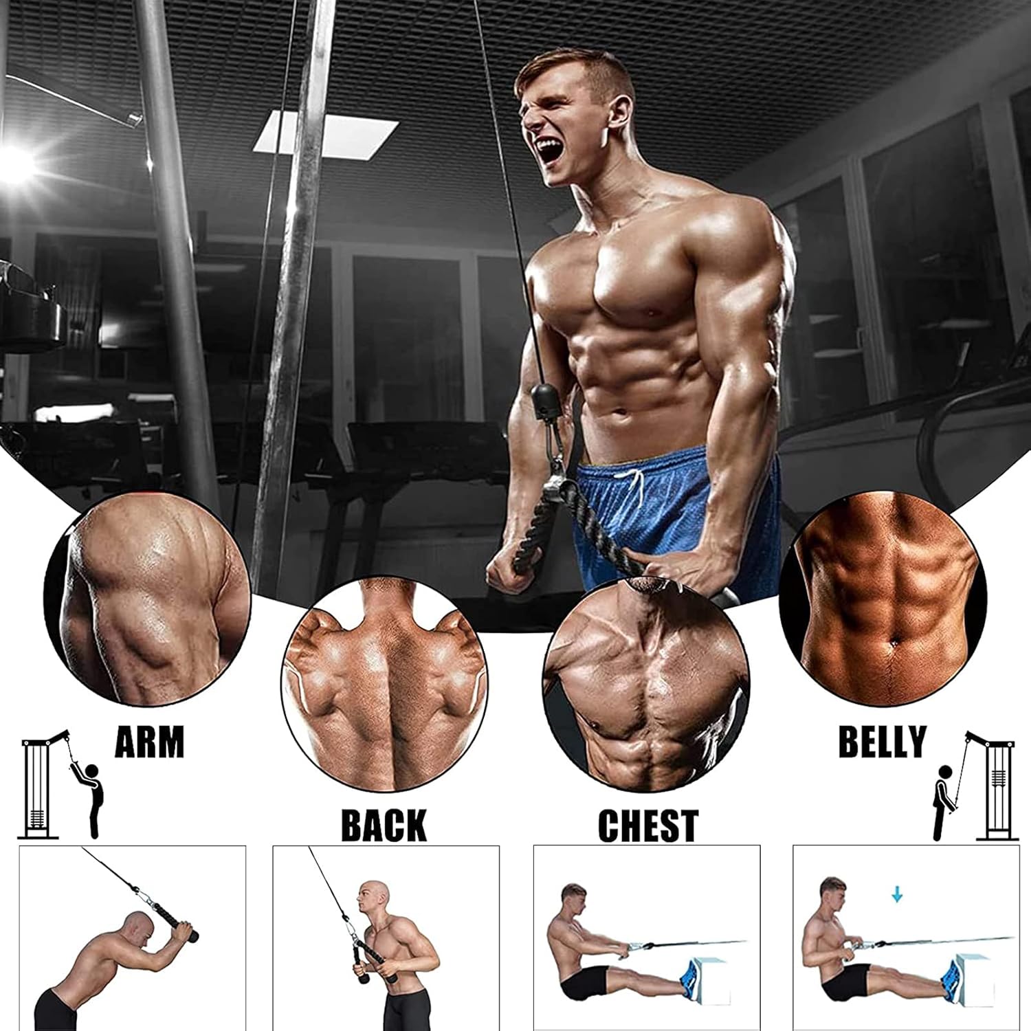 By changing the connection ways and switching the handle of the cable machine attachments, you can do a wide range of exercises.