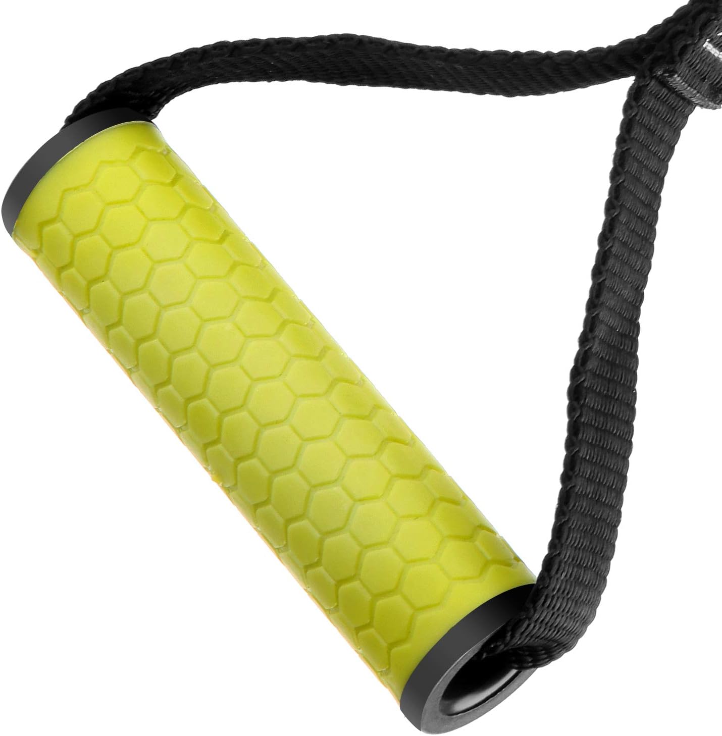 Durable– made with super strong ABS plastic tube core.Heavy-duty– thick woven nylon webbing, and heavy duty stitching, capable of holding up to 330lbs+ (150kg).Comfortable– silicone grips, soft and sweat resistant.Convenient– with galvanized steel carabiner snap link hook, durable, easy & quick to connect/disconnect.Attractive — colorful silicone handles, grey, blue, yellow, rose more choices than just black.Portable– lightweight and with the carry bag, easy to pack your grips to gym.Used for home gym heavy duty exercise handle and resistance band with handles ,lat pull down attachment,cable crossover machine,farmers walk handles.