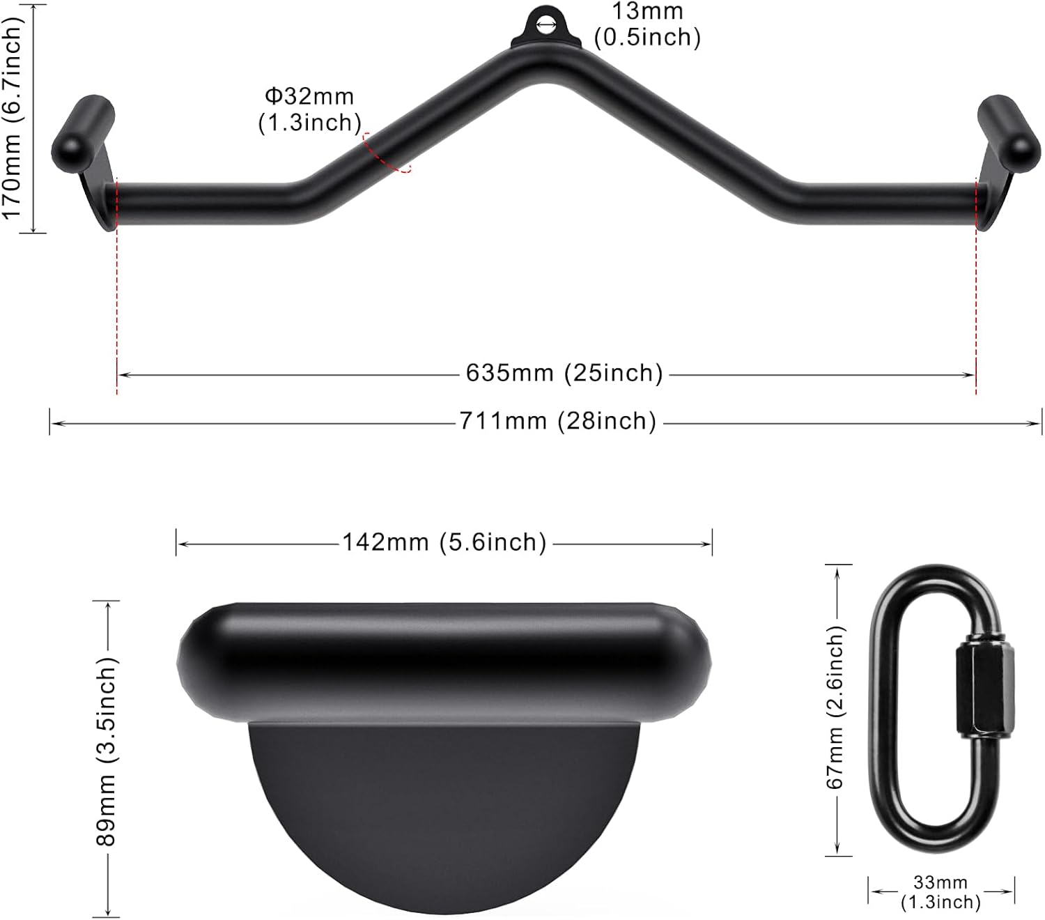 Comfortable and Strong Grip: This cable attachment features zip line machine attachment grips that are 1.3 inches in diameter and 5.3 inches in length. They offer a comfortable and strong grip that enhances your performance and prevents slipping.