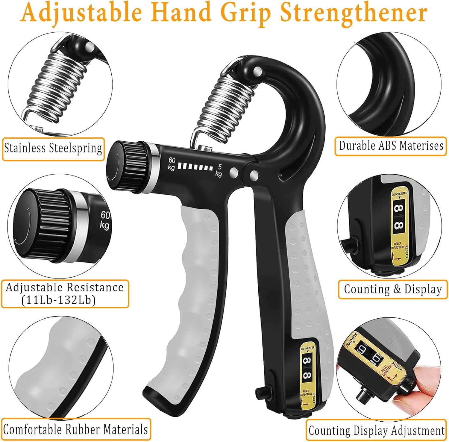 QTZFKFLHD Hand Grip Strengthener Workout Kits : The grip trainer set includes an adjustable forearm gripper, 10 levels of forearm strengthener, finger exerciser and squeeze stress ball. Alternating the use of these items can fully exercise the strength and flexibility of the fingers, hands, and forearms.
