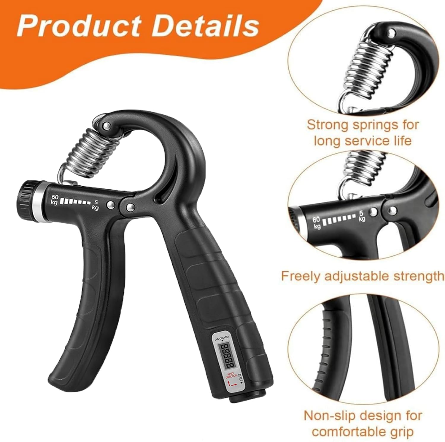 【Grip Strength Trainer】:Counting Style Grip Strength Trainer.This Trainer Features A Counting Function That Records Your Training Data Each Time You Press The Hand Grip Strengthener.With The Counting Function,You Can Clearly Track Your Training Progress And Exercise Data.Simply Press The Button To Start Counting,And Press And Rotate The Bottom Button To Reset.