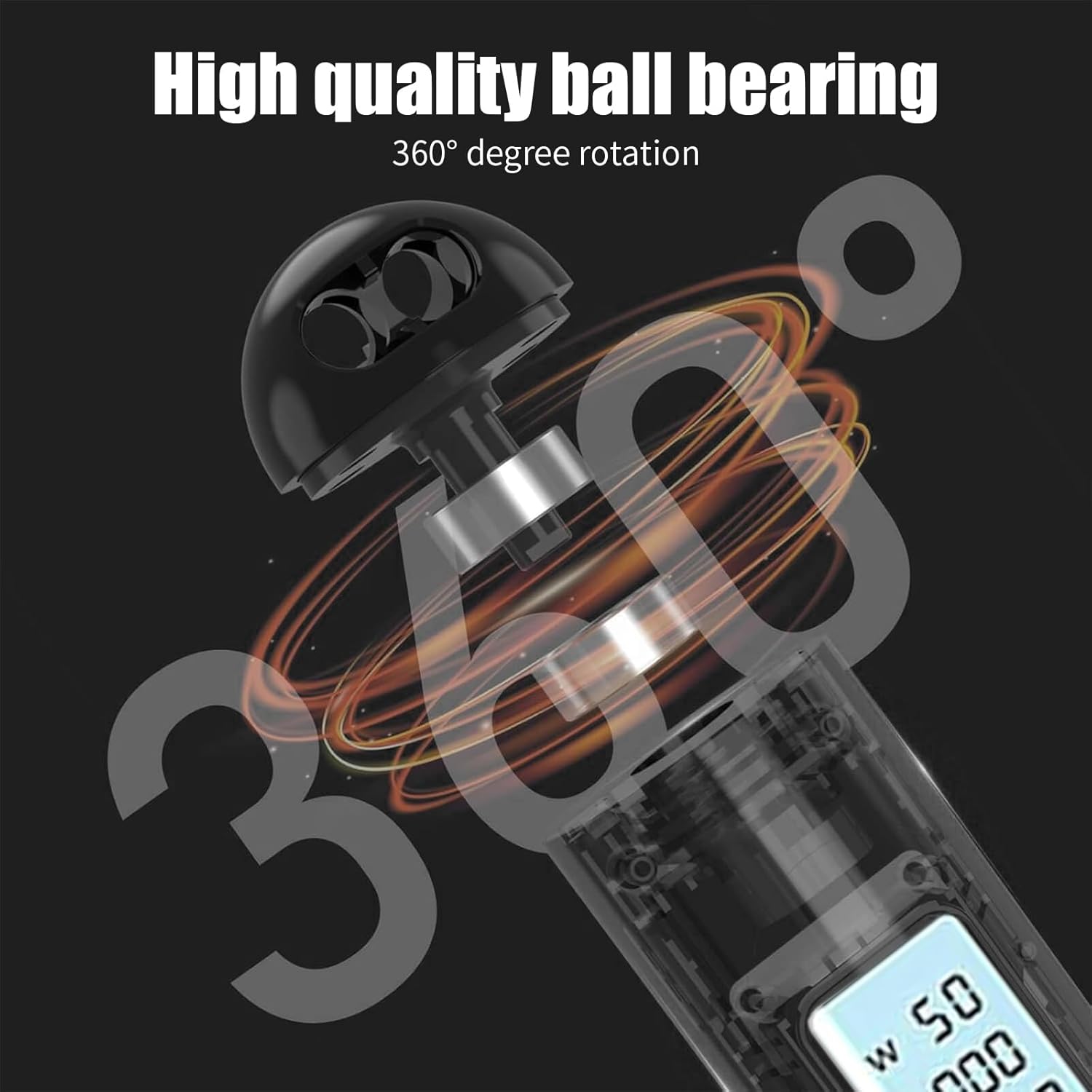 【High-Quality Construction】This jump rope features professional-grade 360-degree rotating ball bearings, ensuring a stable and smooth jumping experience. It effectively reduces friction and prevents tangling, enhancing workout comfort and efficiency.