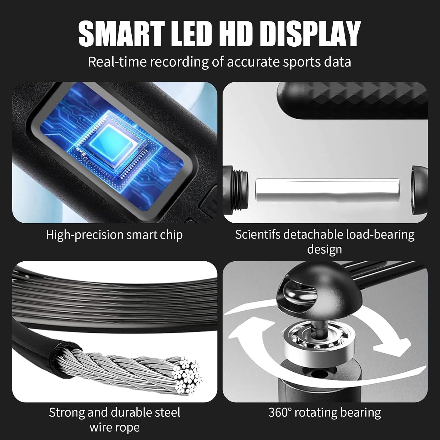 Innovative Wireless Design: Equipped with built-in sensors and a digital display to track your jump count, time, and calories burned in real-time, making your workouts more scientific and effective.