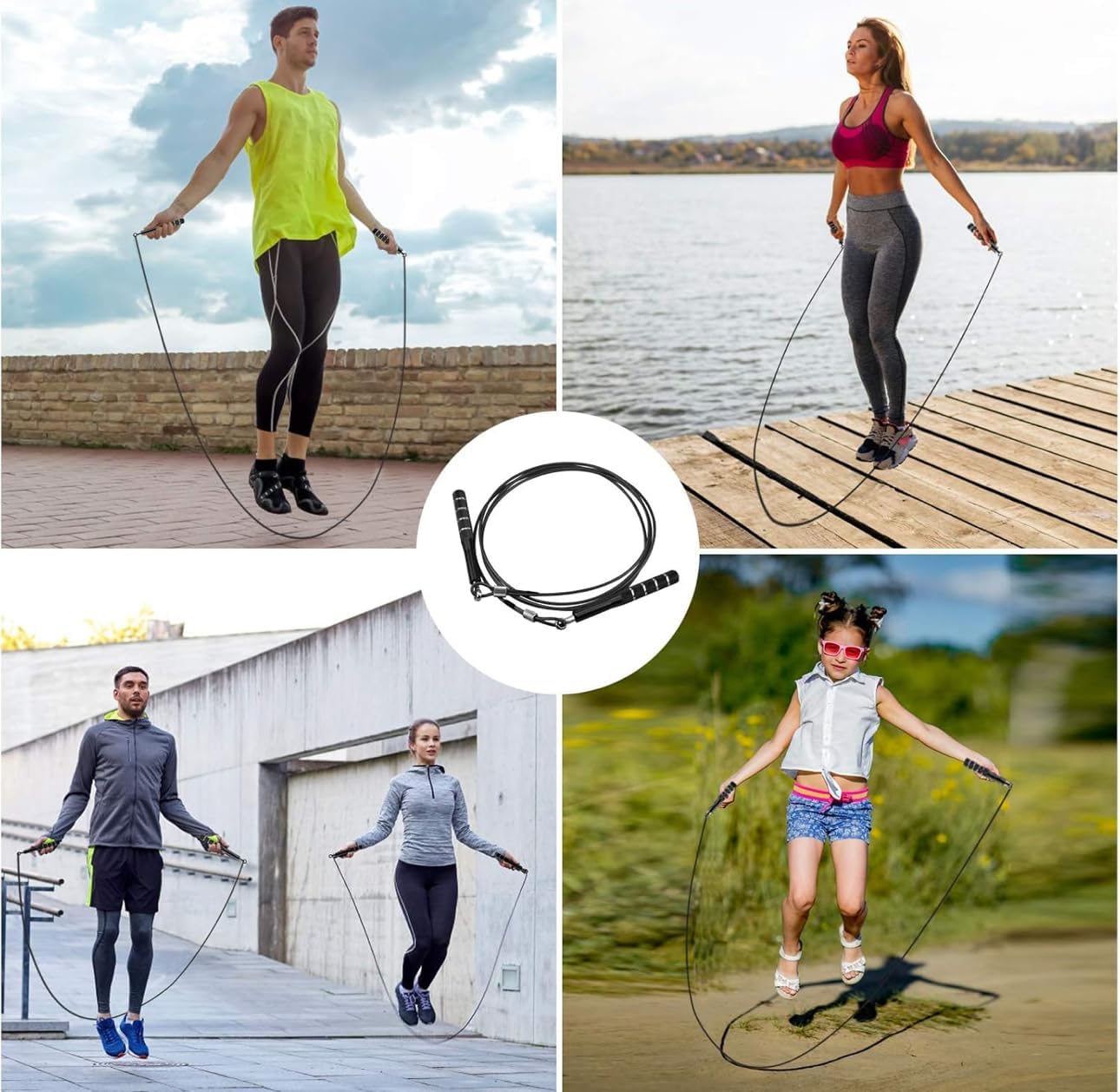 🏋️♂️ Premium Speed Jump Rope for Men, Women & Kids — Smooth, Adjustable & Built to Last Take your cardio, fitness, and weight loss routine to the next level with this high-performance adjustable jump rope designed for speed, durability, and convenience. Whether you’re training at home, in the gym, or on the go, this professional-grade skipping rope delivers a fast, smooth, and tangle-free experience every time. Built with premium materials, dual-bearing rotation, and a fully adjustable steel cable, it’s the ideal jump rope for adults and kids, beginners and athletes, and everyone in between. 🔥 Why You’ll Love This Jump Rope 💫 Smooth 360° Dual Bearing Rotation Engineered with dual speed ball bearings, this jump rope provides lightning-fast, friction-free rotation and consistent motion—ideal for building speed, endurance, and coordination during high-intensity workouts. 📏 Fully Adjustable Length – Fits All Heights & Ages The 9.8-foot rope is easily adjustable with the included tool, making it suitable for all users—from children to tall adults. Perfect for family use or solo training. 💪 Durable Steel Wire Core with Protective Coating The inner steel cable is coated with tough silicone to prevent wear and tear, eliminate tangling, and allow smooth jumping on any surface—indoors or outdoors. 🖐️ Non-Slip Lightweight Aluminum Handles The ergonomic, hollow aluminum handles provide a secure grip, helping you maintain control and reduce arm fatigue during extended workouts. Designed for both comfort and performance. 🏡 Train Anywhere, Anytime Lightweight and portable, this jump rope is ideal for home workouts, outdoor exercise, travel routines, or quick warm-ups—no bulky equipment or gym required. 💥 Perfect for: Cardio & endurance workouts Weight loss & calorie burning Cross-training, MMA, boxing & HIIT Fitness for beginners, kids, and athletes Home, gym, or on-the-go routines 🎁 Bonus: Lifetime Guarantee This rope is backed by a hassle-free, lifetime guarantee. If there’s ever an issue, simply contact customer support for a prompt resolution—your satisfaction is always a priority.