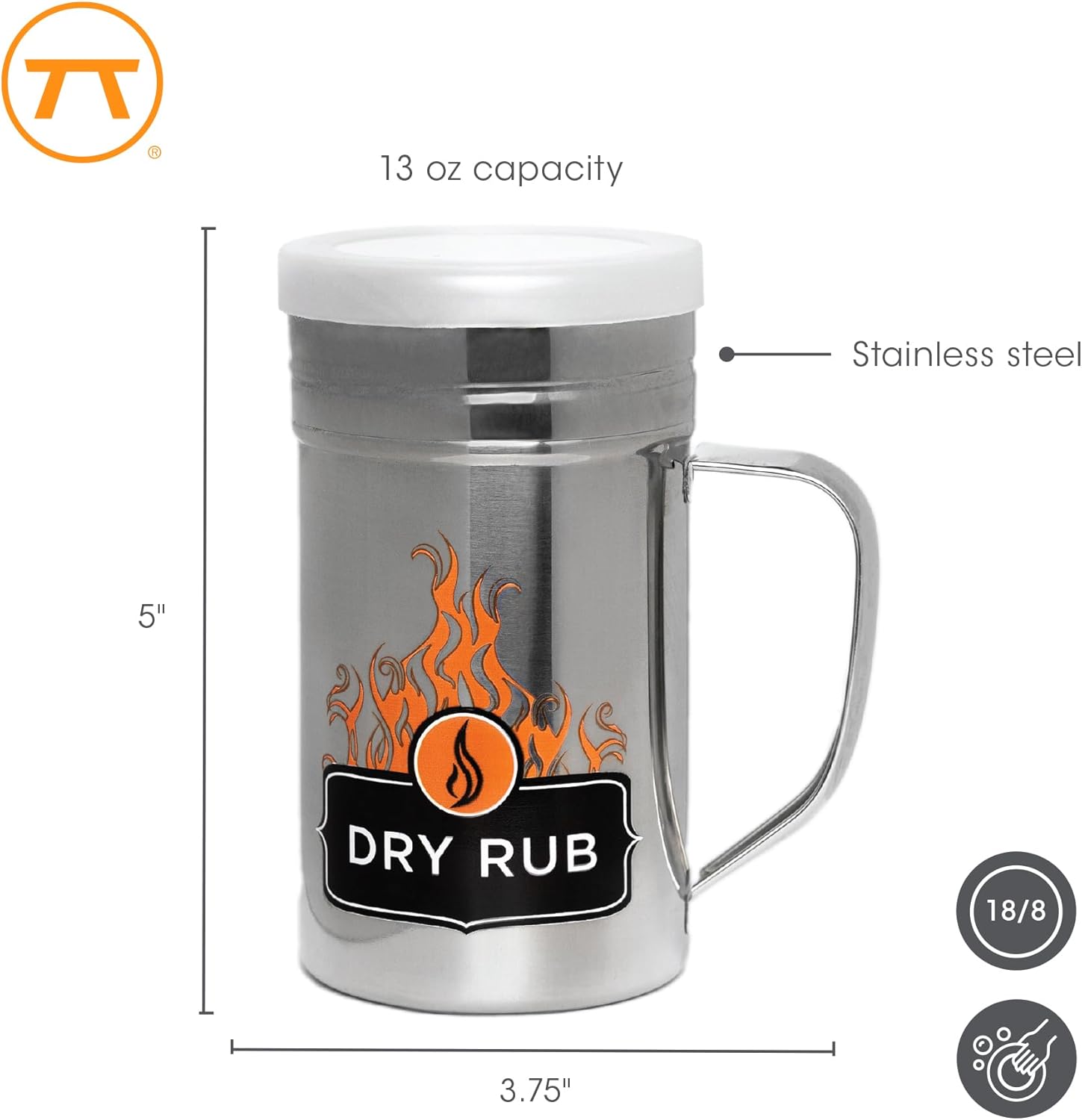 CHEESE, FLOUR AND MORE: Besides being a dry rub shaker this metal shaker can also be used to shake dry crumbled cheeses, flour, and other seasoning blends!