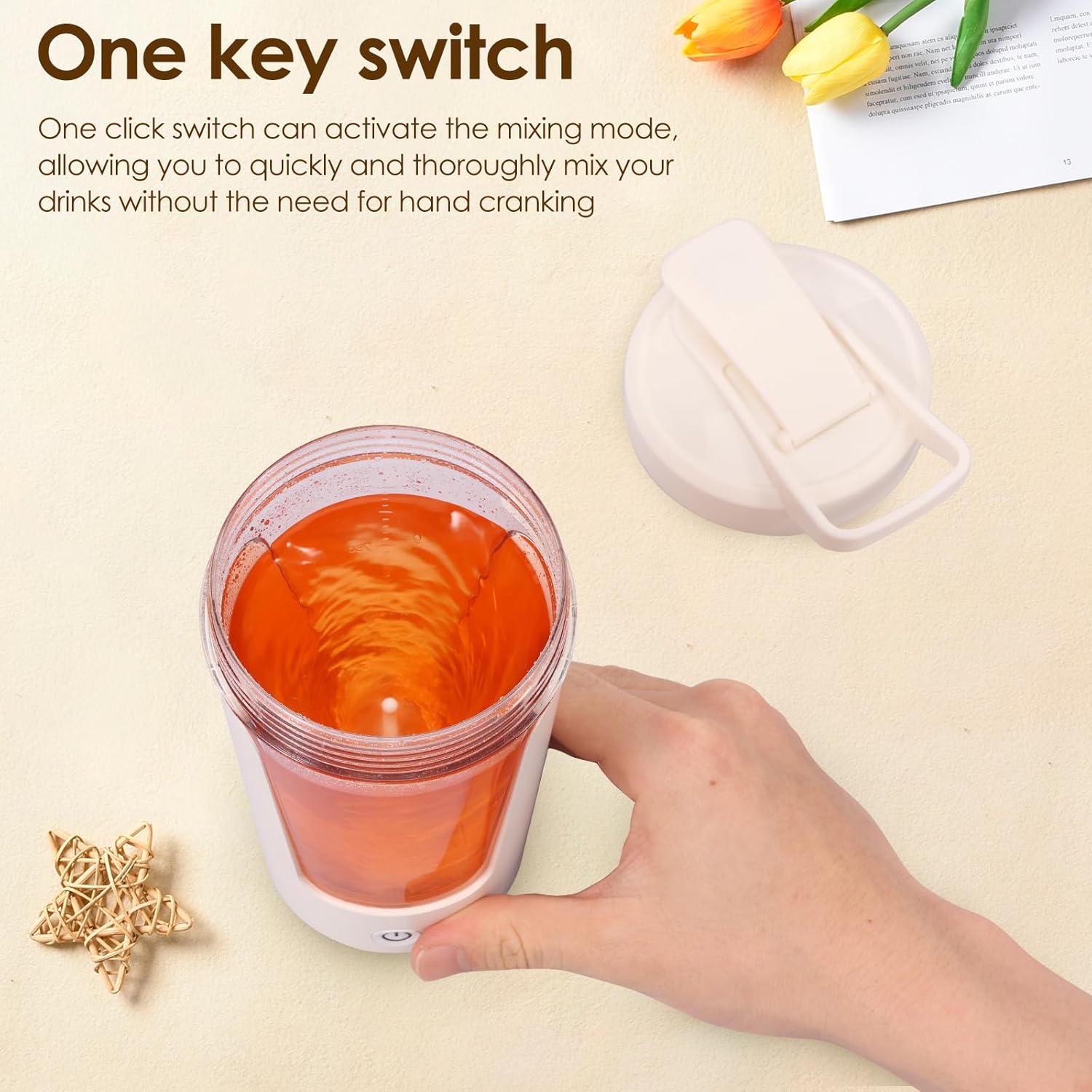 This automatic coffee cup features a 500mAh battery that fully charges in just 1 hour, delivering 40-50 minutes of continuous use. With a simple one click button, activate the high speed stirring mode, no more shaking by hand. The shaker bottle’s robust motor guarantees a smooth, lump free blend every time, making it a good choice for fitness enthusiasts and coffee lovers