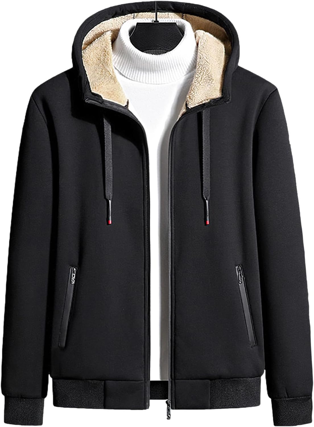● Jacket: Full zip closure, hood with adjustable drawstring, ribbed cuffs and hem, 2 zipper slanted pockets.