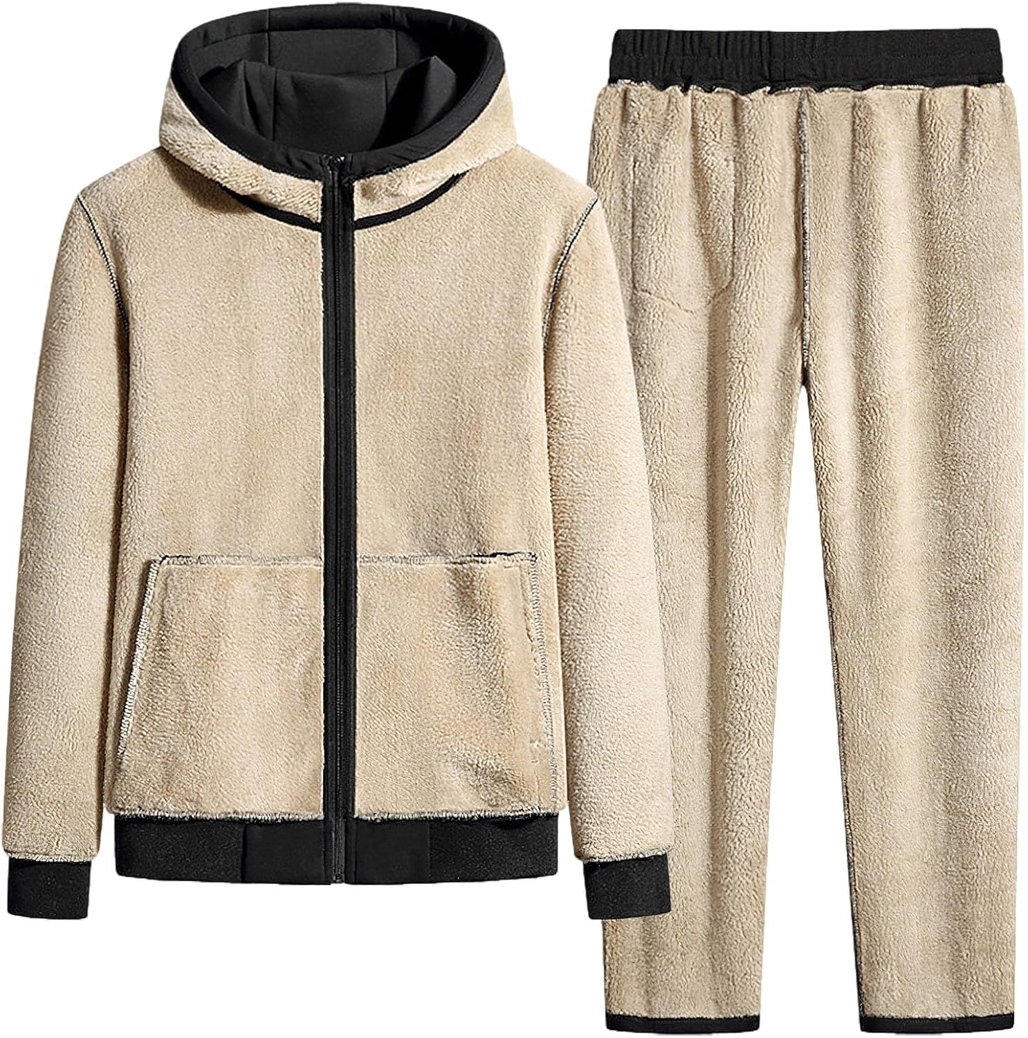 Mens 2 Piece Sherpa Fleece Lined Hooded Tracksuit Set