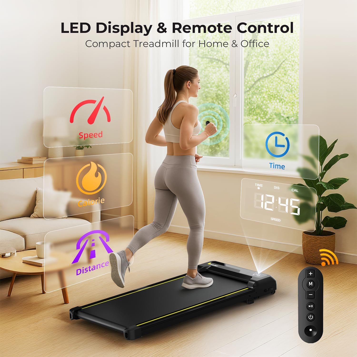 Experience the convenience of remote control operation with this mini treadmill for home. Perfect for those who need a running machine that fits seamlessly into their daily routine without taking up much space.
