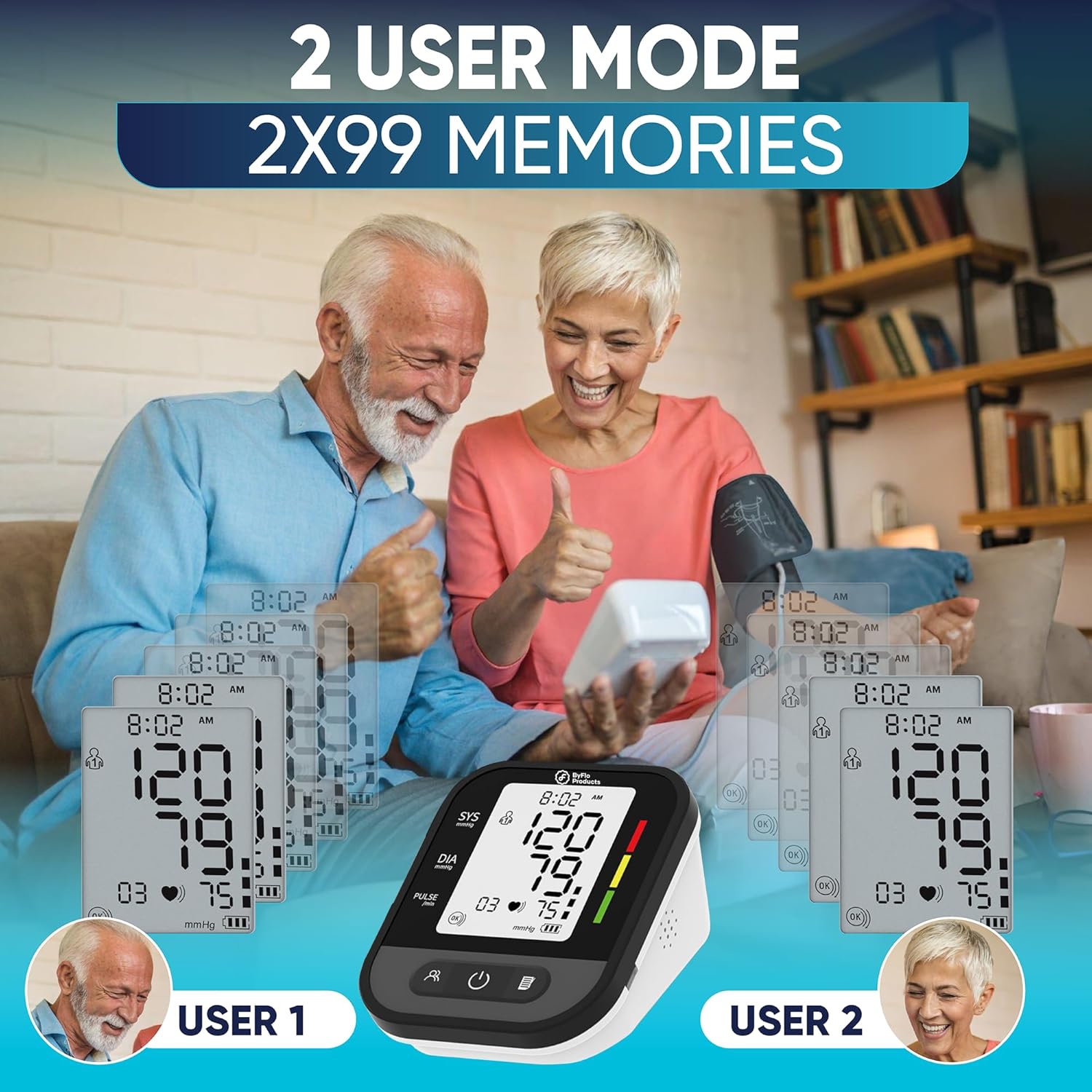 ENHANCED MEMORY FUNCTION: Store and review up to 99 readings with dual-user capabilities, allowing you to monitor and track your health over time. This feature makes our bp machine for home a must-have for health-conscious individuals.
