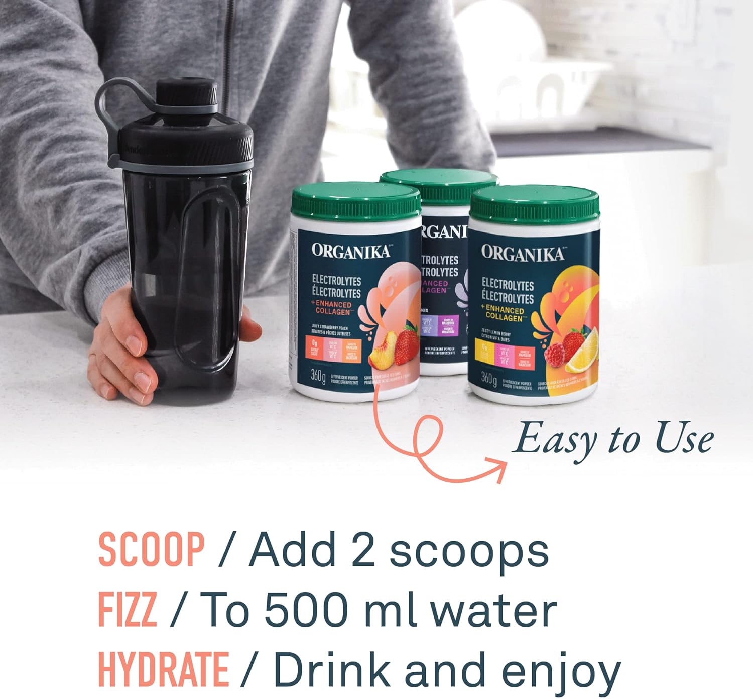 Be the first to review “Organika Canadian-Made Electrolytes + Enhanced Collagen – Strawberry Peach Flavour – Sugar-Free Hydration | 5g Protein + 100% of Daily Vitamin C – 360g, 30 Servings”