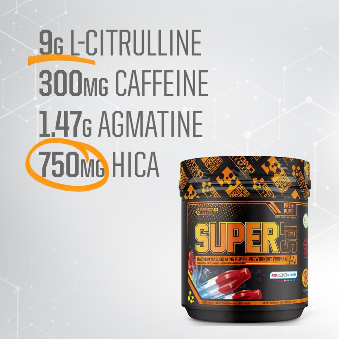 Be the first to review “Beyond Yourself – SuperSET | Pre-Workout Formulated for Peak Performance & Insane Pumps | Dominate Savage Workouts with 300mg Caffeine, 9g L-Citrulline + HICA, Taurine, & Agmatine | 40 Servings | Red, White, & Boom”
