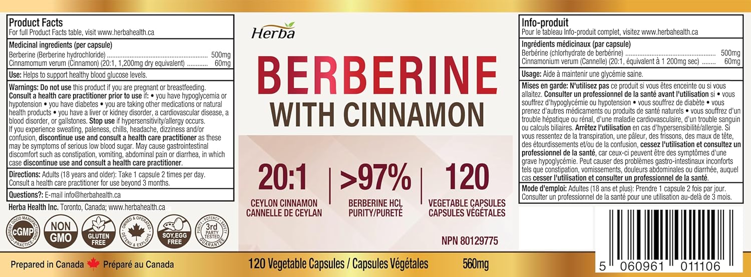 Be the first to review “Herba Berberine Supplement with Ceylon Cinnamon – 120 Capsules | Ultra Pure >97% | Berberine 1000mg (per 2 Berberine 500mg capsules) | Blood Sugar Support Supplement | Berberine HCL with Cinnamon Capsules 20:1 | Made in Canada”