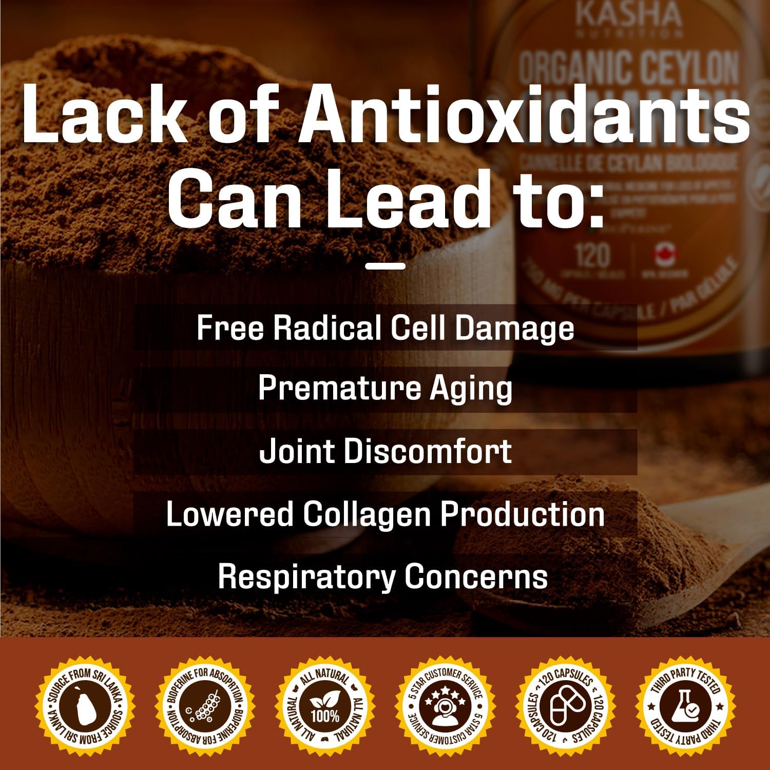 New. Kasha Nutrition Organic Ceylon Cinnamon 2250 mg per day – 750 mg per Capsule Industry Strongest with Bioperine for Absorption. Antioxidant & Loss of Appetite. True Sri Lanka Organic Ceylon Cinnamon Powder. Cinnamon Supplement with Bioperine for Absorption. Vegetarian. Non-GMO. 120 Capsules.