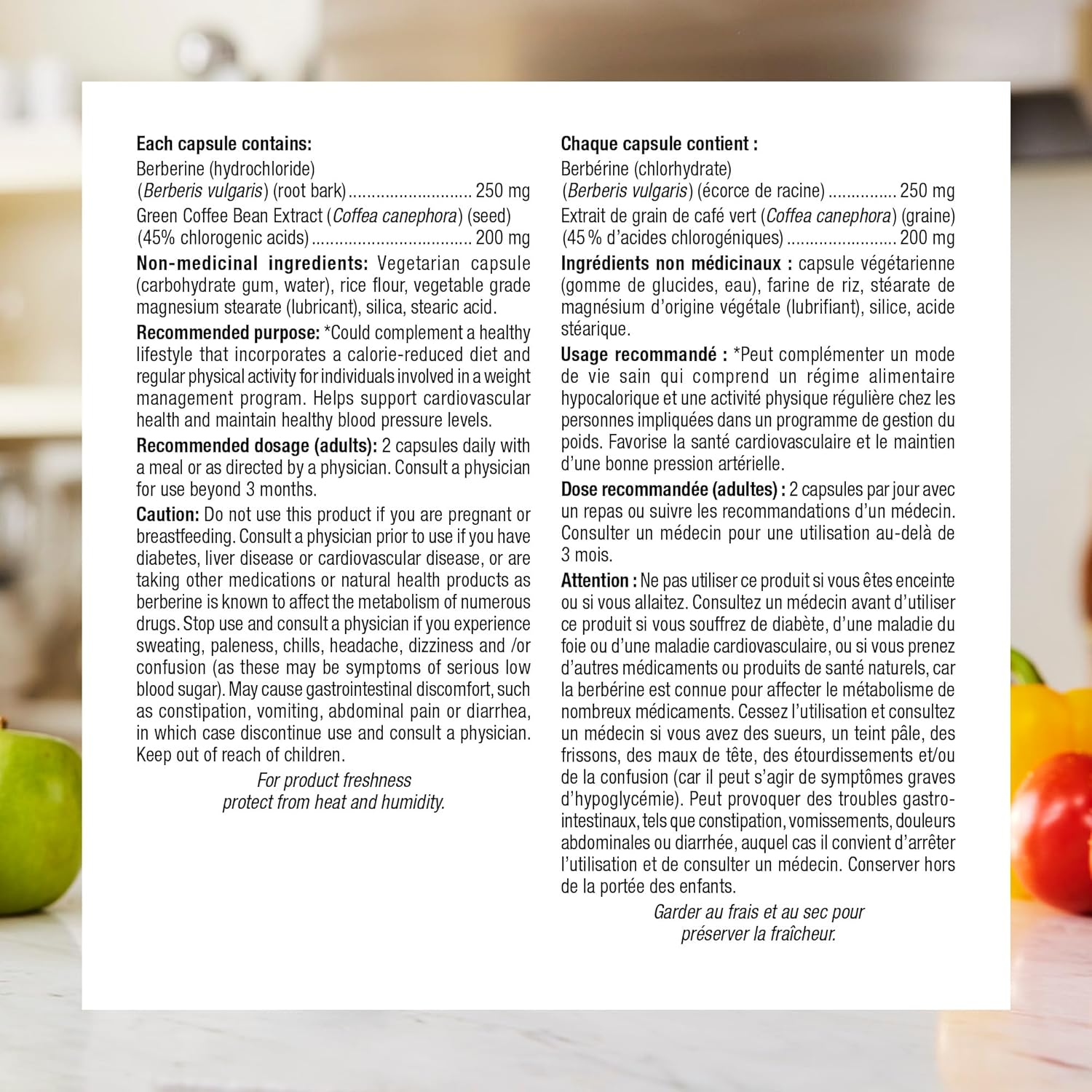 Each Capsule Contains: 250 mg of sustainably sourced Berberine from the roots of the barberry plant and 200 mg of Green Coffee Bean Extract
