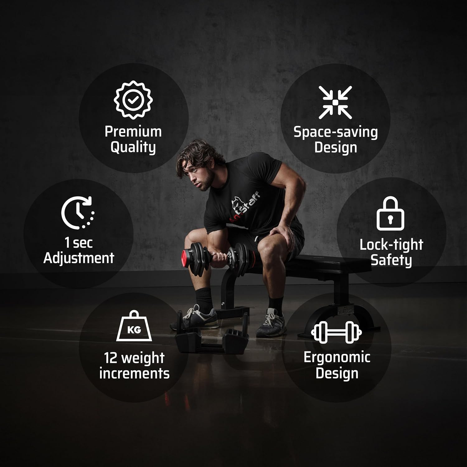 ✔ TRUSTED QUALITY BY AMSTAFF FITNESS – Crafted with meticulous attention to detail and approved by seasoned fitness enthusiasts, AmStaff Adjustable dumbbell weight set reflects the excellence and commitment of AmStaff Fitness. From design to durability, every aspect is thoroughly tested to ensure optimal performance for your home workouts.