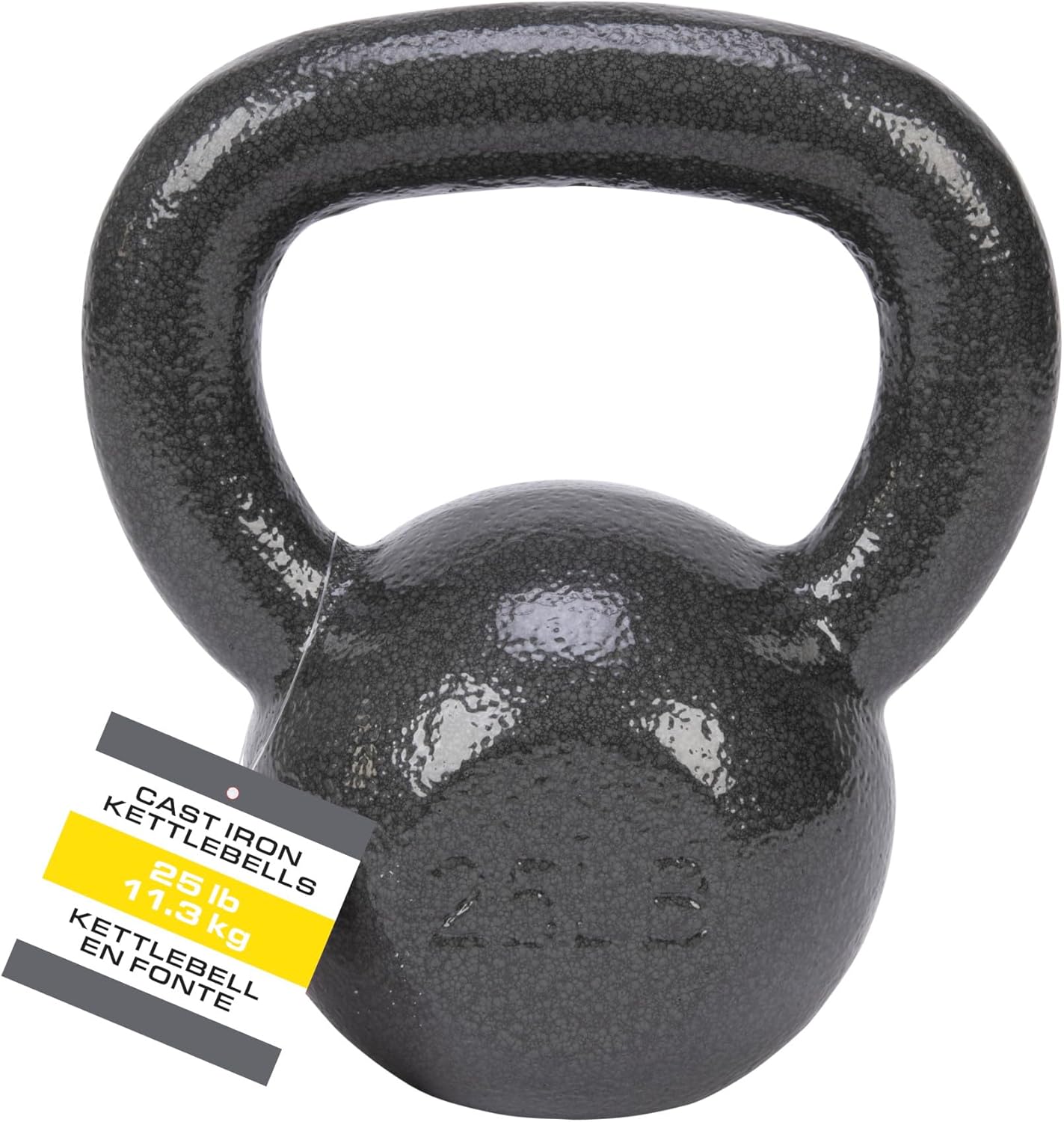 Swing your way towards your fitness goals with the 25lb Cast Iron Kettlebell. This tool is a crowd-pleaser for building strength and power. Kettlebell workouts burn fat, sculpt and tone muscles and build cardio endurance. Using cast iron construction, this kettlebell provides ultimate durability and long-lasting function for all your future workouts. The textured surface ensures a secure and comfortable grip. Start improving your balance and agility while stabilizing your core muscles with this multifunctional fitness tool.