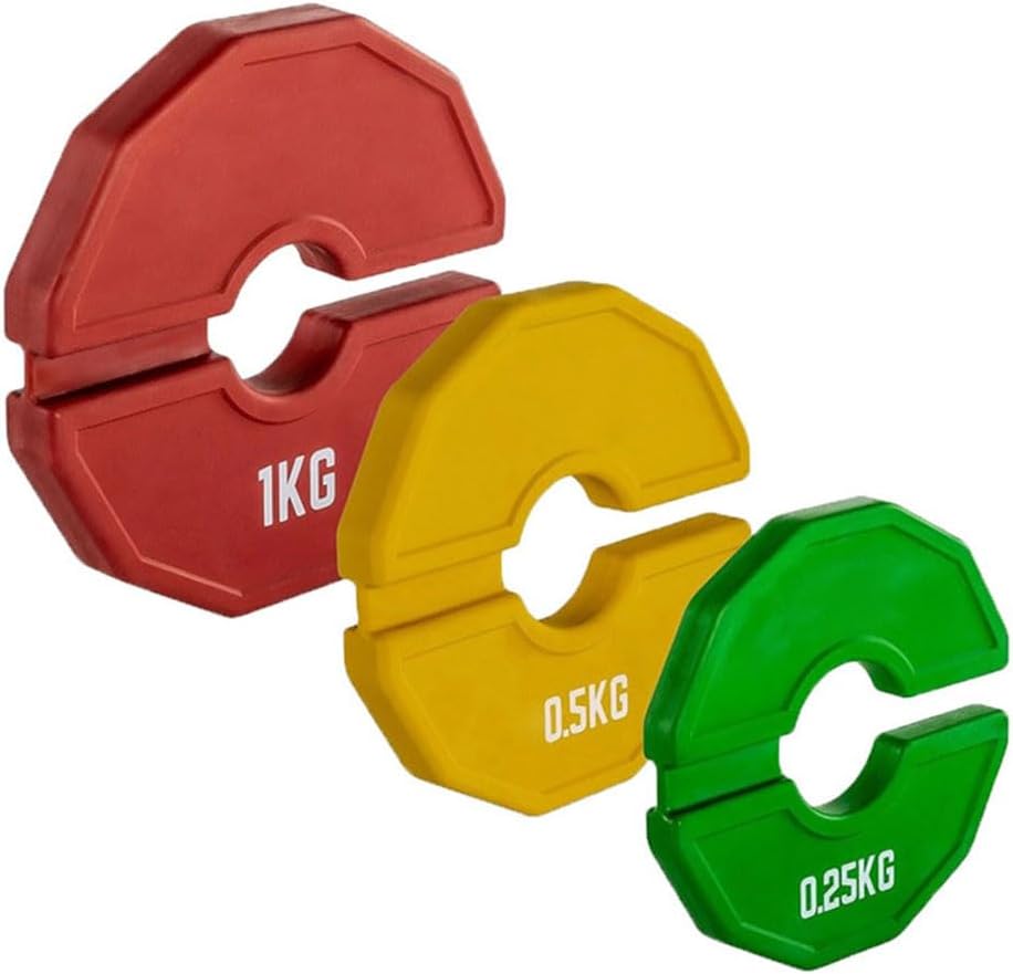 Precise weight gaining; Our gym micro weight plates are designed with small weight split pieces (available in 0.25kg, 0.5kg, 1kg), suitable for progressive loading training, help break through the stagnation period of bench press, hard pull, shoulder press and other movements.
