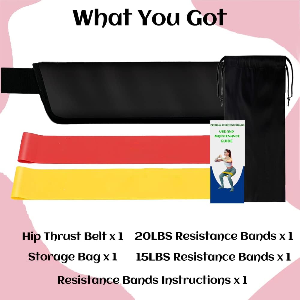 Whats Include Hip thrust belt x 1 Storage bag x 1 Resistance Bands x 2 Warm up resistance bands instructions x 1