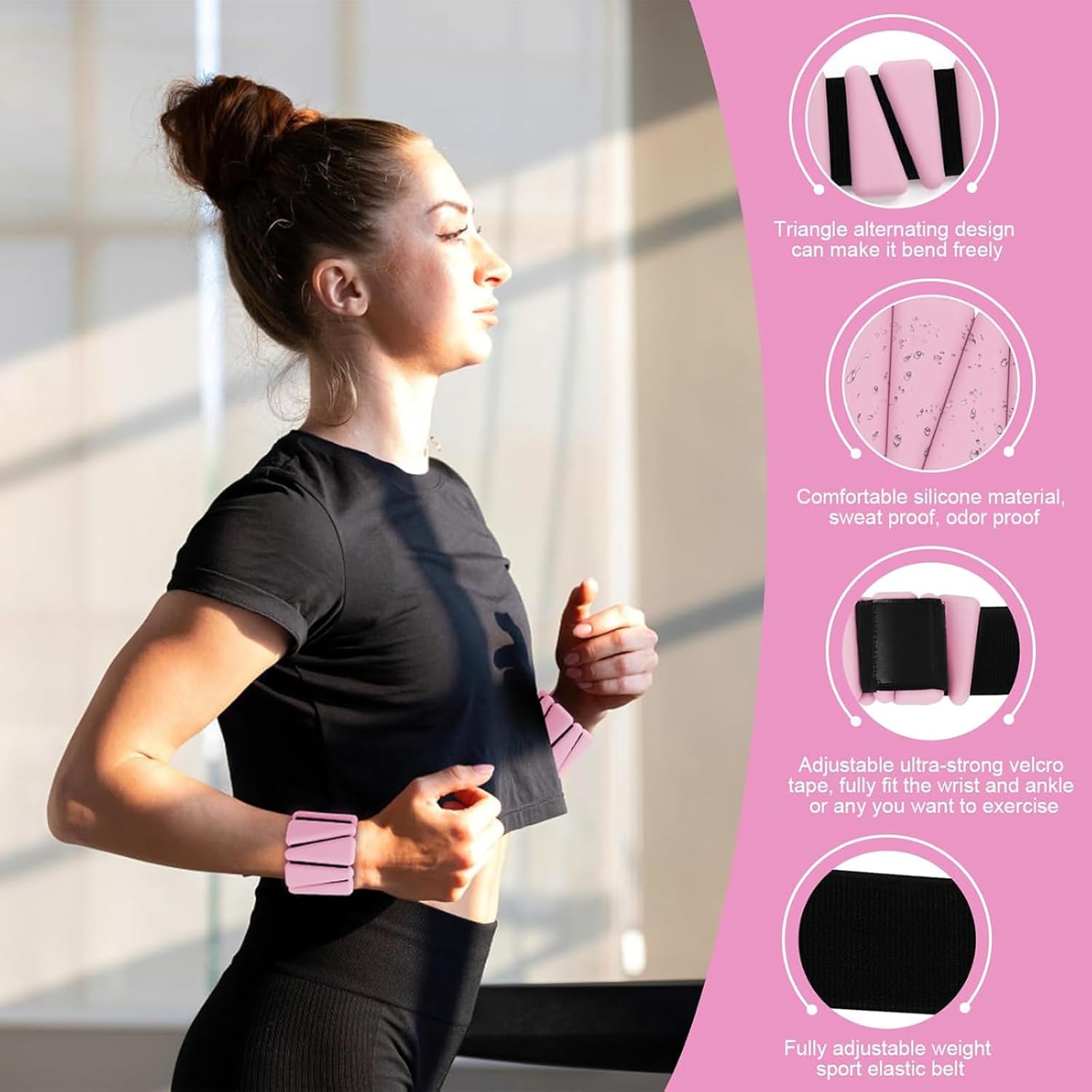 Wrist Weights Set of 2(1Lb Each), Adjustable Wrist and Ankle Weights for Women, Wearable Silicone Arm & Leg Weights for Yoga, Dance, Gym, Walking, Running, Pilates, Aerobics