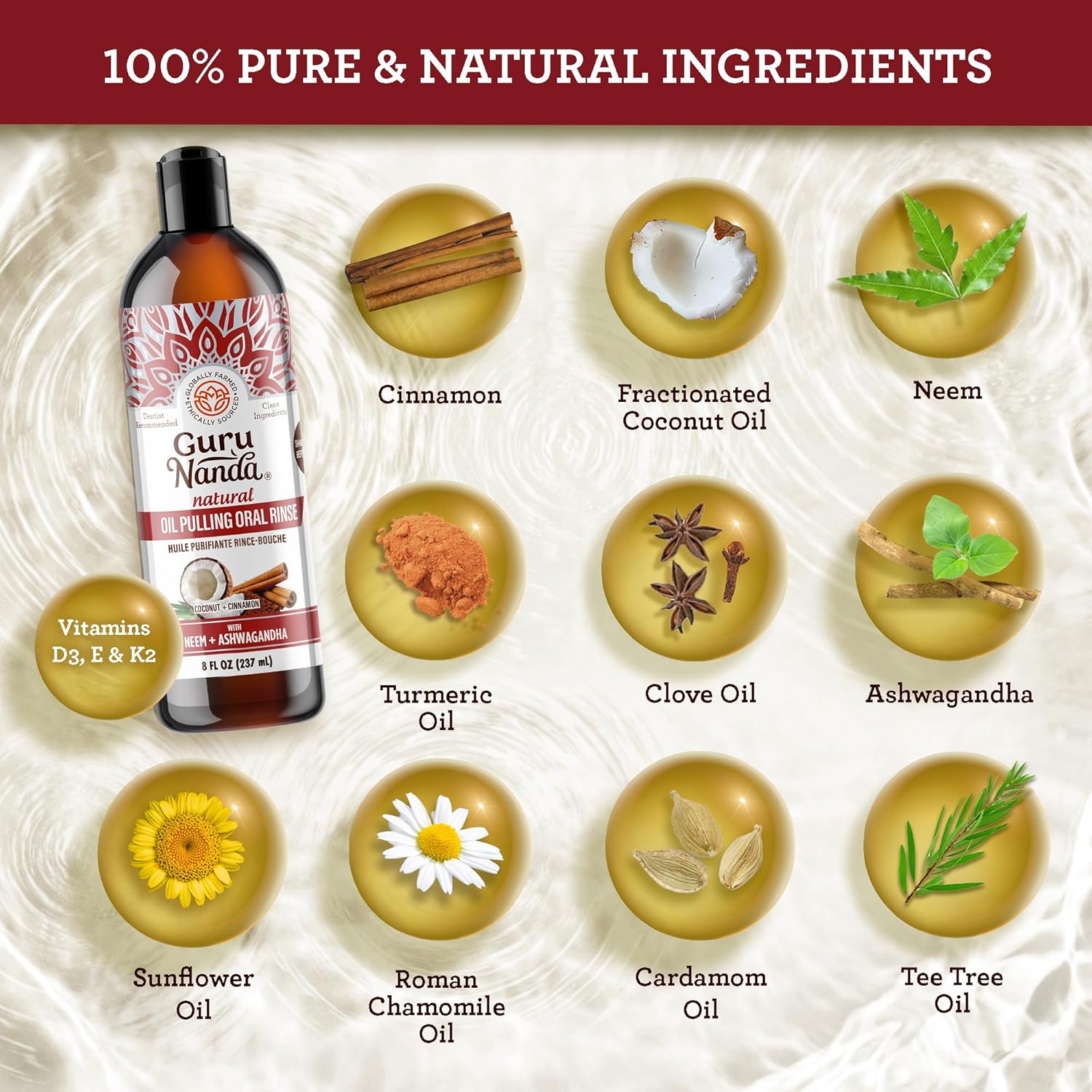 Be the first to review “GuruNanda Ashwagandha Oil Pulling with Neem & Roman Chamomile, For Fresh Breath and Happy Gums, Alcohol & Flouride-Free Essential Oil Oral Rinse with Toothbrush & Tongue Scraper, 237 ml”