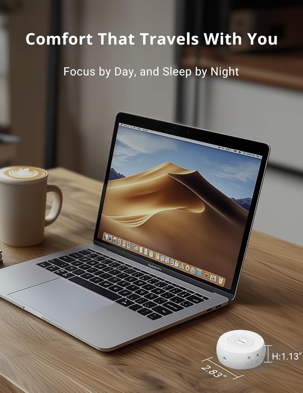 Versatile for Home and Travel: Portable sound machine suitable for babies, kids, and adults; works at bedside, desk, or on the go; a practical option for travelers and light sleepers