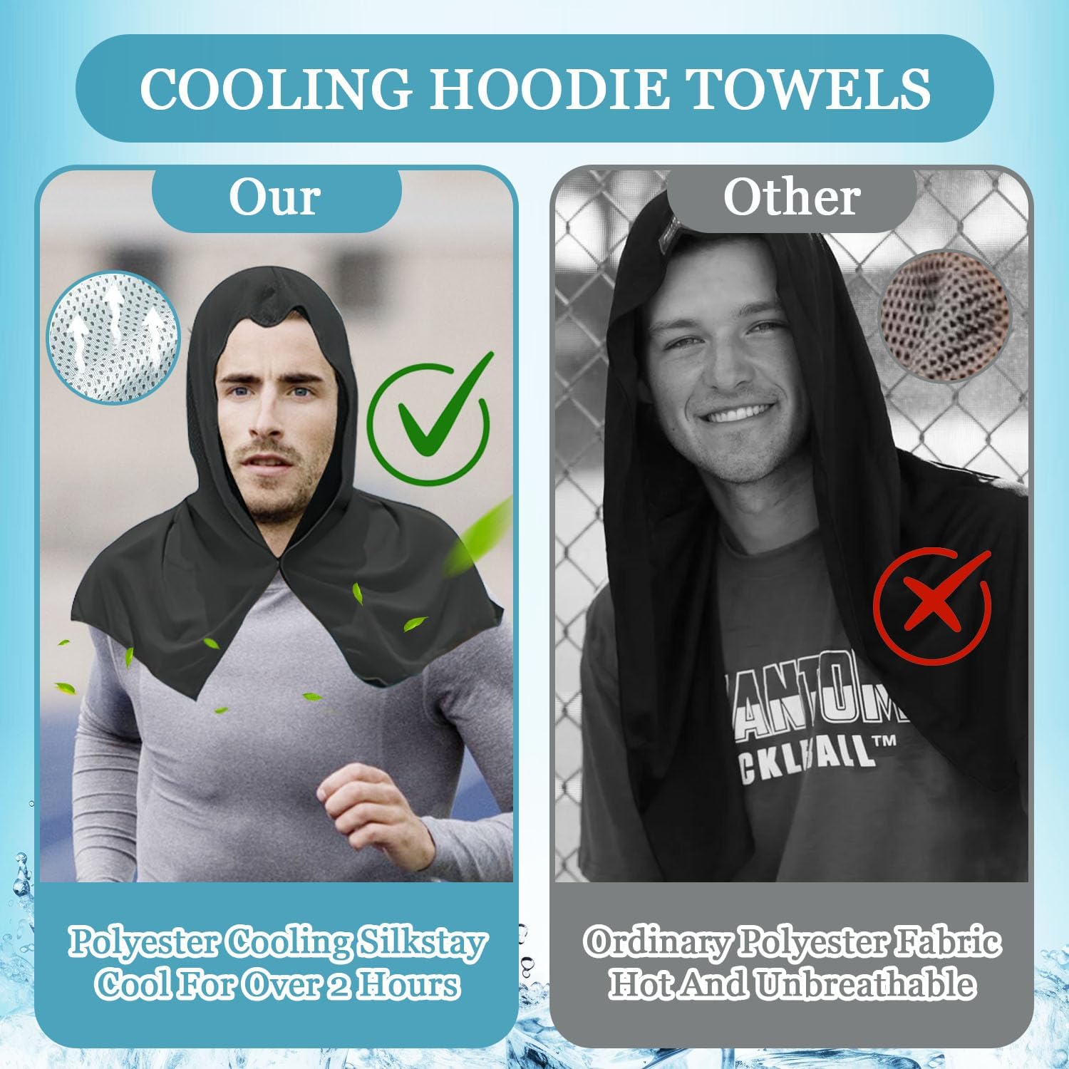 Package Included: You will receive 2Pcs cooling hoodie towels. 1pcs black cooling towel and 1pcs gray cooling towel. The quantity is rich to satisfy your daily use and replacement.