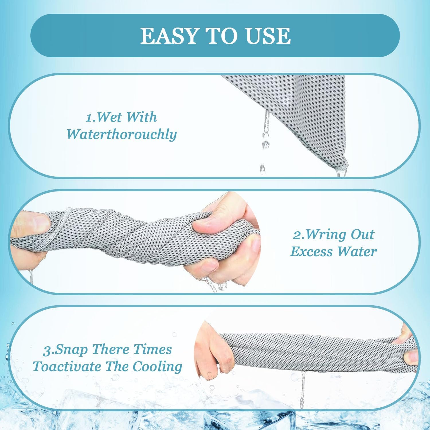 Premium Material: These sweat towels are made from premium polyester fabric, soft, breathable, and moisture-wicking, The unique cooling system uses moisture from the towel to draw the sweat away from your skin to keep you cool all time.
