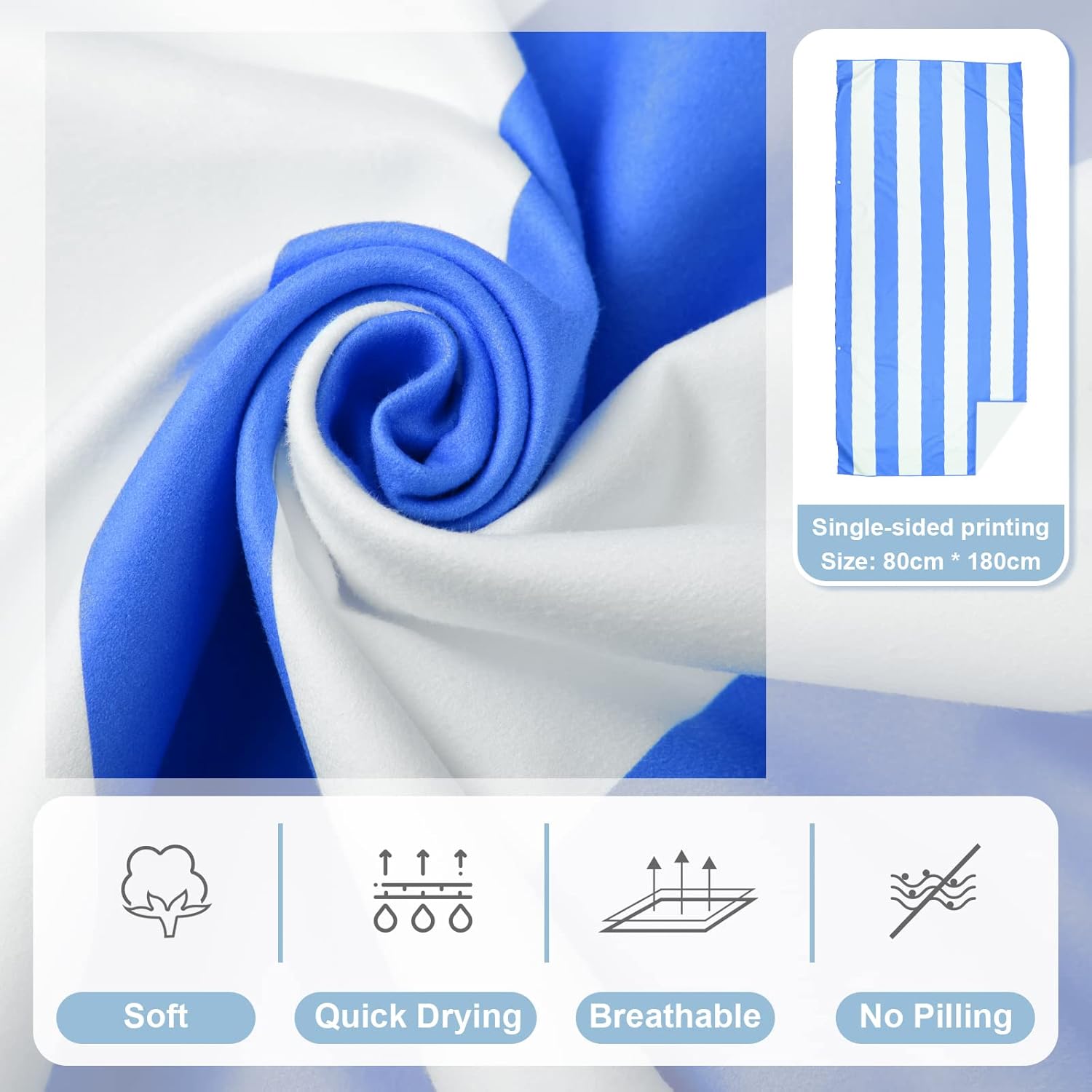 Microfiber Beach Towel: Crafted from premium microfiber fabric, 80% polyester, 20% nylon, beach towel is comfortable, breathable and skin-friendly to use during you spend time on the beach or swimming pool.